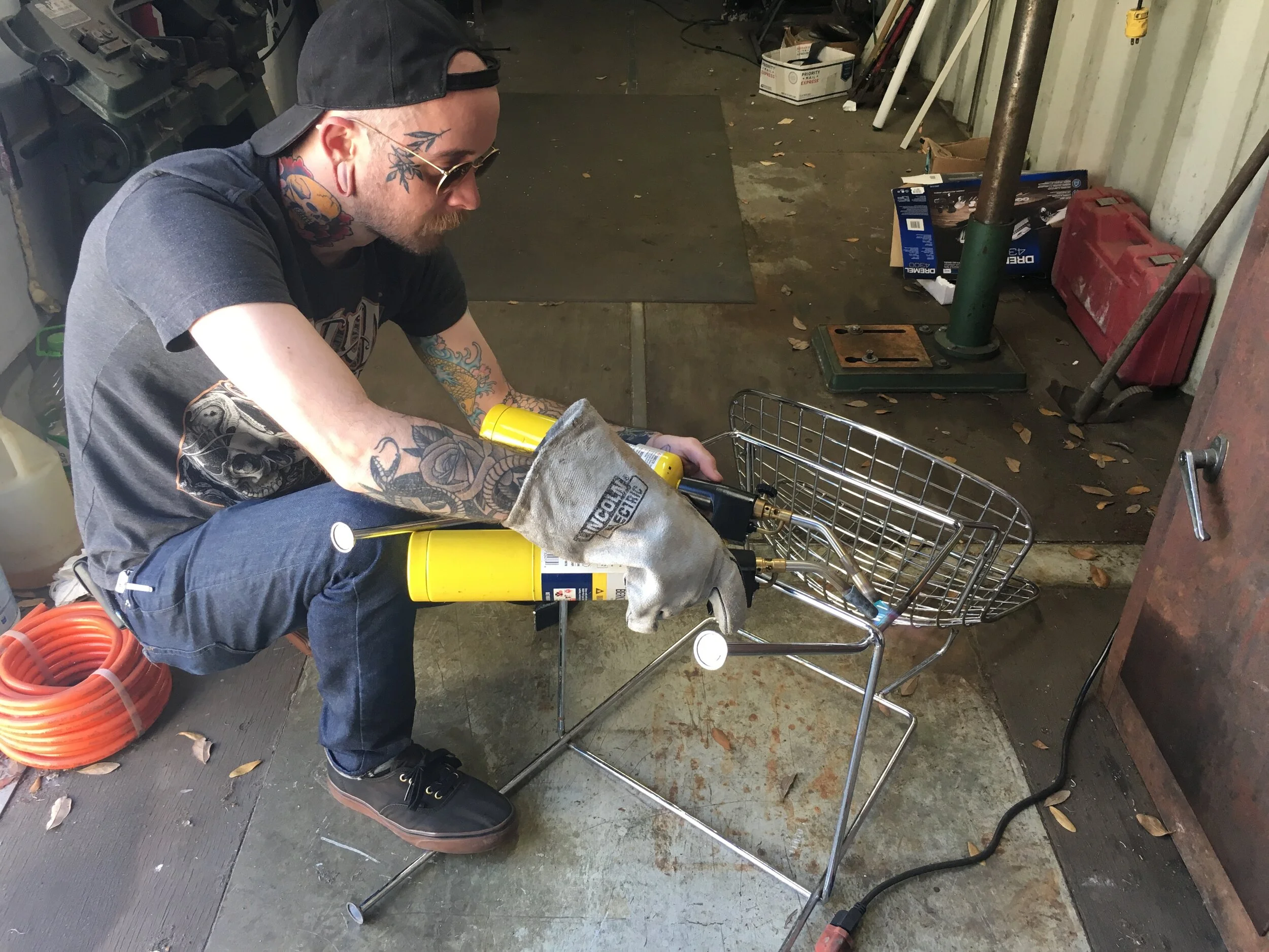What makes a sad object? Here’s me in my DIY home studio, and the talented metalworker Taylor Elliot, making spoons and chairs sad